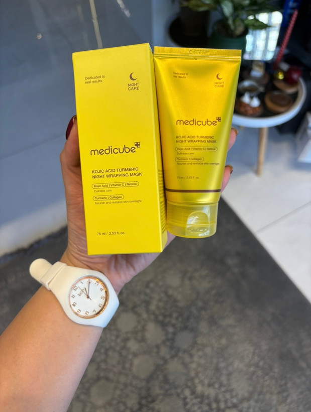 ماسک صورت مدیکیوب مدل KOJIC ACID TURMERIC NIGHT WRAPPING همان ماسک شب زردچوبه معروف برای انواع پوست طراحی شده و حاوی ترکیبات کلیدی زردچوبه و اسید کوجیک میباشد