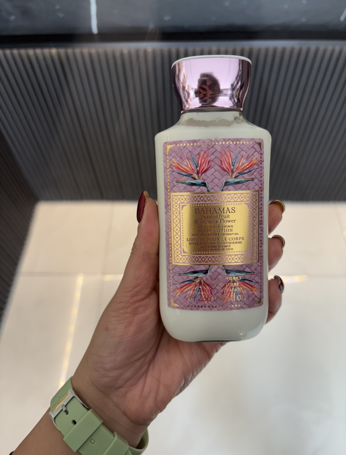 لوسین بدن بث اند بادی ورکز باهاماس ارجینال bath and body works _bahamas نوع رایحه استوایی میوه ای و شیرین مناسب انواع پوست مرطوب کننده و خوشبو کننده بدن رایحه انرژی بخش حس سفر به سواحل گرمسیری باهاما را برای شما تداعی می کند این لوسین با ترکیب از نت های میوه ای و گلی پوستی خوشبو لطیف و شاداب جذب سریع پوست به شما میدهد مناسب مصرف روزانه
