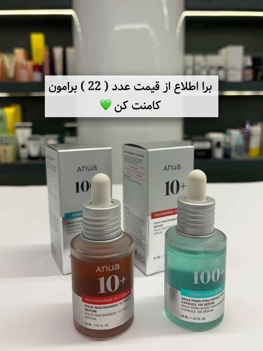 سروم Hyaluron Anua (آبی) آبرسان عمیق، سبک و فوری پوست رو شاداب، نرم و پلامپ میکنه بدون حس چربی. سروم Niacinamide 10% Anua کنترل چربی، کمک به کاهش جوش و لک، کوچیکتر شدن منافذ و یکنواخت شدن رنگ پوست.
