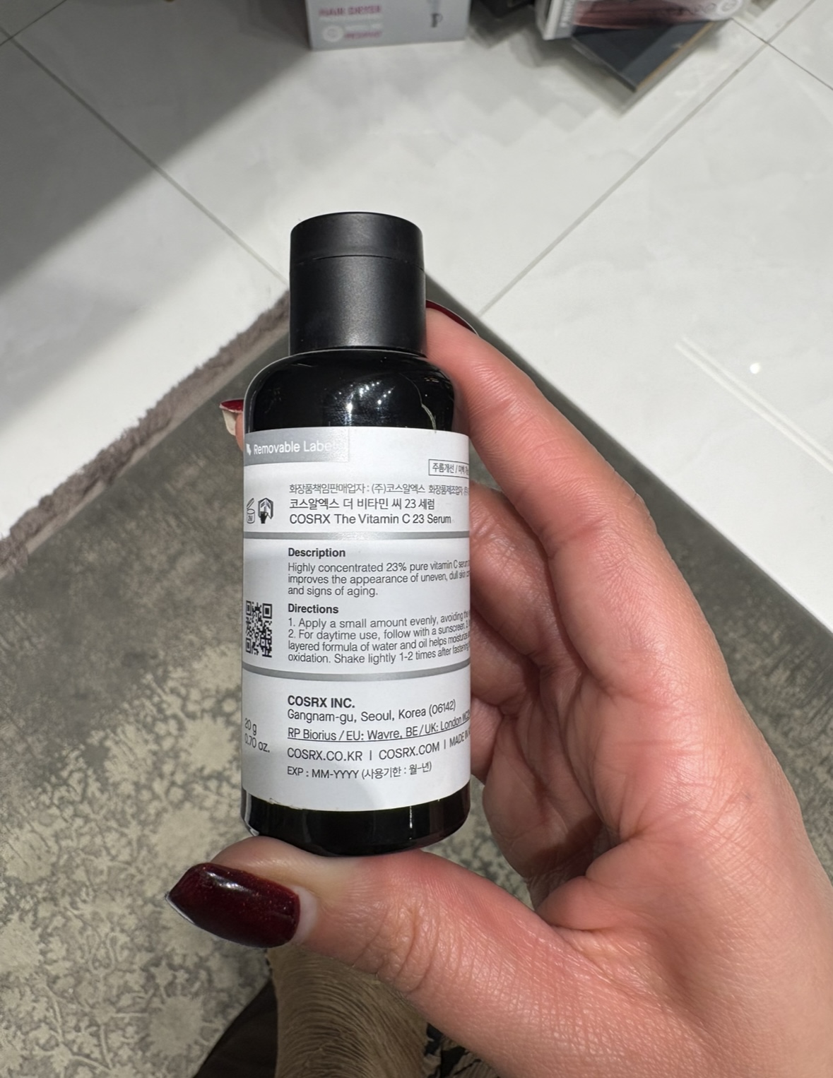 تست توصیه می شود: این سرم از ویتامین C خالص بسیار غلیظ تشکیل شده است. قبل از استفاده از آن روی صورت، آزمایش پچ روی بدن توصیه می شود.